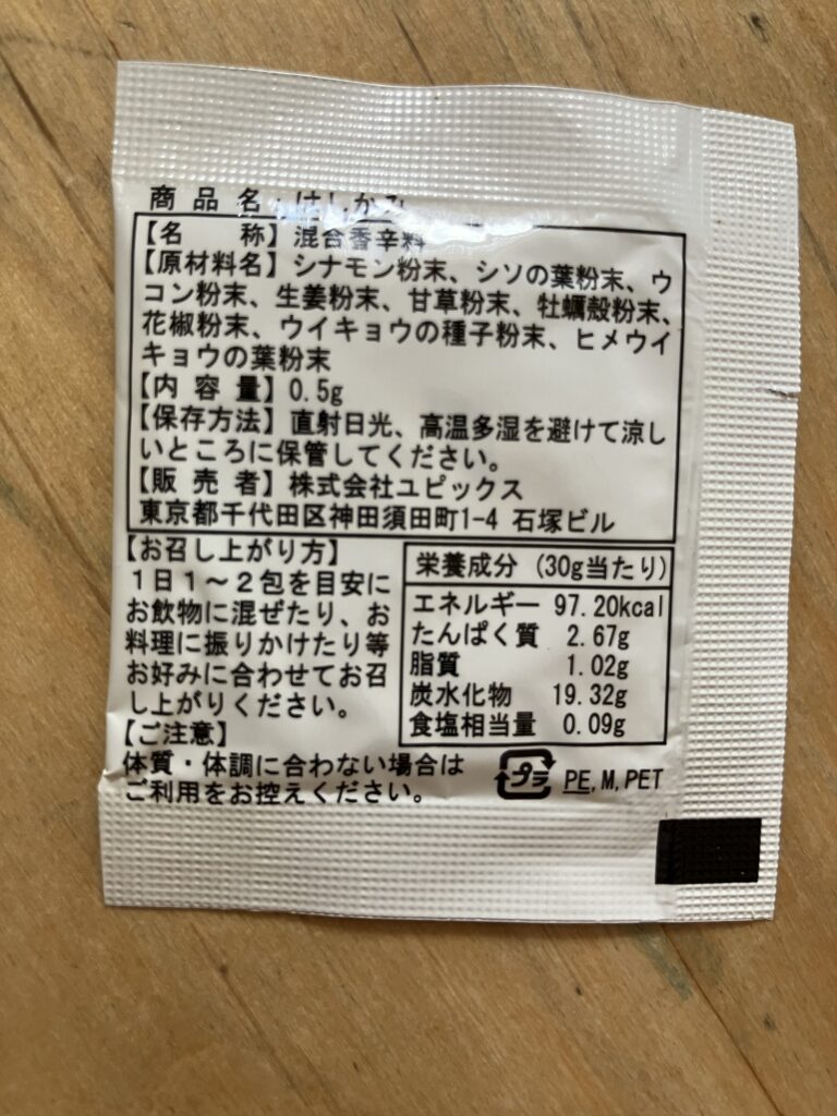 「はしかみ」というブレンドのスパイスで、漢方薬のお店で購入したものです。