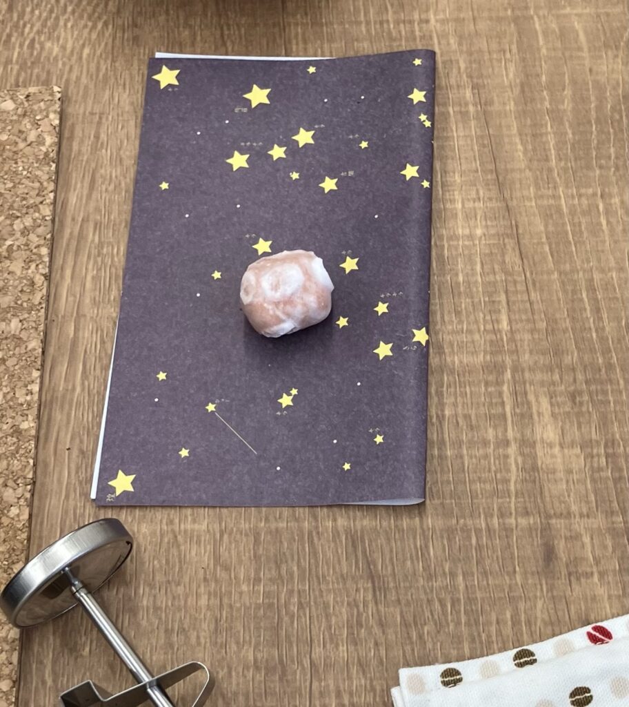 最後はコーヒーを実際に抽出し、飲み比べ。講座を開催した日はホワイトデーのため、サプライズで講座で使用したデカフェ・エチオピアモカに合う、いちご味のあん玉をご用意しました。